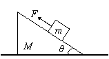 7、如图,质量为M的楔形物块静置在水平地面上,其斜面的倾角为θ。斜面上有一质量为m的小物块,小物块与斜面之间存在摩擦。用恒力F沿斜面向上拉小物块,使之匀速上滑。在小物块运动的过程中,楔形物块始终保持静止。地面对楔形物块的支持力为( )