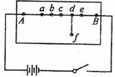 (2)若电流的两表笔分别接触图中d和f两点(f与d的连线和A与B的连线垂直)时表针反偏(电流从红表流进时,表针正偏),则电流表的红表笔接在 点,要使表针仍指在零刻度,应将接f的表笔向 (填“左”或“右”)移动。