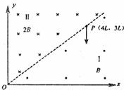 16.(18分)如图,在空间中有一坐标系xOy,其第一象限内充满着两个匀强磁场区域Ⅰ和Ⅱ,直线OP是它们的边界。区域Ⅰ中的磁感应强度为B,方向垂直纸面向外,区域Ⅱ中的磁感应强度为2B,方向垂直纸面向内。便捷上的P点坐标为(