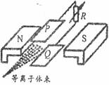 2.磁流体发电是一项新兴技术,它可以把气体的内能直接转化为电能,下图是它的示意图。平行金属板P、Q之间有一个很强的匀强磁场,磁感应强度为B,将一束等离子体(即高温下电离的气体,含有大量正、负带电粒子)垂直于B的方向喷入磁场,每个离子的速度为v,电荷量大小为q,P、Q两板间距为d,稳定时下列说法中正确的是 ( )