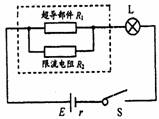 7.高温超导限流器由超导部件和限流电阻并联组成,如图所示。超导部件有一个超导临界电流Ic,当通过限流器的电流I>Ic时,将造成超导体失超,从超导态(电阻为零)转变为正常态(一个纯电阻),以此来限制电力系统的故障电流。假定有一实验电路如下图所示,超导部件的正常电阻为R1=3Ω,超导临界电流Ic=1.