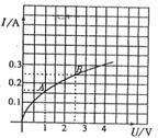 ③该小组某同学通过实验描绘出小灯泡的I―U图线,如下图所示,试根据图线中给出的参数,求出小灯炮在工作点A和B的电阻值分别为 、 。