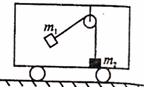 13.如图所示,质量为m2的物体A放在车厢的水平底板上,用竖直细绳通过光滑定滑轮与质量为m1的物体B相连,车厢正沿水平轨道向右行驶,此时与物体B相连的细绳与竖直方向成θ角。则底板对m2支持力FN= ,物体m2受到的摩擦力的大小f= 。