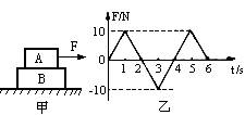 4.如图甲所示,两物体A、B叠放在光滑水平面上,对物体A施加一水平力F,F-t关系图象如图乙所示。两物体在力F作用下由静止开始运动,且始终相对静止,则
