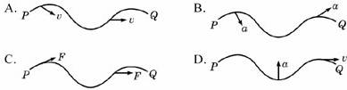 15.质点在一平面内沿曲线由P运动到Q,如果v、a、F分别表示质点运动过程中的速度、加速度和受到的合外力,下列图象可能正确的是 ( )