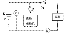 5.图示为汽车蓄电池与车灯、启动电动机组成的电路,蓄电池内阻为0.05Ω,电表可视为理想电表。只接通S1时,电流表示数为