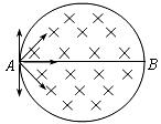 14.(16分)如图所示,一匀强磁场磁感应强度为B;方向向里,其边界是半径为R的圆,AB为圆的一直径.在A点有一粒子源向圆平面内的各个方向发射质量m、电量-q的粒子,粒子重力不计.