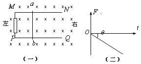 12.如图(一)所示,固定在水平桌面上的光滑金属导轨MN、PQ处于方向竖直向下的匀强磁场中,金属杆ab与金属导轨接触良好。在两根导轨的端点M、P之间连接一电阻,其它部分电阻忽略不计。现用一水平向右的外力F作用在金属杆ab上,使金属杆由静止开始在导轨上向右滑动,运动中杆ab始终垂直于导轨.图(二)为一段时间内金属杆受到的安培力F安随时间t的变化关系,则可以表示