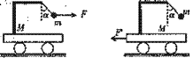 4.如图所示,质量为M 的小车放在光滑的水平面上.小车上用细线悬吊一质量为m的小球,M>m.现用一力F水平向右拉小球,使小球和车一起以加速度a向右运动时,细线与竖直方向成α角,细线的拉力为T;若用一力F’水平向左拉小车,使小球和车一起以加速度a’向左运动时,细线与竖直方向也成α角,细线的拉力为T’.则( )