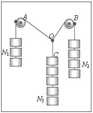 14.(6分)有同学利用如图的装置来验证力的平行四边形定则:在竖直木板上铺有白纸,固定两个光滑的滑轮A和B,将绳子打一个结点O,每个勾码的重量相等,当系统达到平衡时,根据勾码个数读出三根据绳子的拉力TOA、TOB和TOC,回答下列问题: