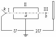 18.如图所示为一电子射线演示仪的简图,Ⅰ区为加速电场,电压大小为U,Ⅲ区为匀强的减速电场,电压大小为2U,Ⅱ区为接地的中空金属壳体,a、b两点分别在Ⅱ、Ⅲ区域的中点,若a点场强为Ea,b点的电势为φb,由灯丝 k加热发射出的电子(初速忽略不计)电荷量为e,经加速后运动到a点的动能为Eka,到b点的动能为Ekb.则( )
