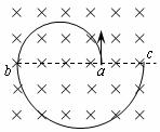 20.如图所示,匀强磁场中有一个带电量为q的离子自a点沿箭头方向运动.当它运动到b点时,突然吸收了附近的若干个电子,接着沿另一圆轨道运动到与a、b在一条直线上的c点.已知