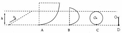 5. 如图所示,小球以初速度为v0从光滑斜面底部向上滑,恰能到达最大高度为h的斜面顶部。右图中A是内轨半径大于h的光滑轨道、B是内轨半径小于h的光滑轨道、C是内轨直径等于h光滑轨道、D是长为