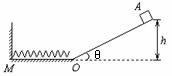15.(14分)小物块A的质量为m,物块与坡道间的动摩擦因数为μ,水平面光滑;坡道顶端距水平面高度为h,倾角为θ;物块从坡道进入水平滑道时,在底端O点处无机械能损失,重力加速度为g 。将轻弹簧的一端连接在水平滑道M处并固定墙上,另一自由端恰位于坡道的底端O点,如图所示。物块A从坡顶由静止滑下,求: