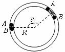 (1)开始时两球将弹簧压缩(弹簧的长度相对环形轨道半径和周长而言可忽略不计),弹簧弹开后不动,两球沿轨道反向运动一段时间后又相遇,在此过程中,A球转过的角度θ是多少?