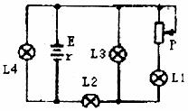 20.如下图所示电路中,L1,L2,L3,L4是四只相同的电灯,当滑动变阻器的滑片P向上滑动时,下列说法正确的是 ( )
