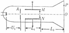24.如图所示为一真空示波管,电子从灯丝K发出(初速度不计),经灯丝与A板间的加速电压U1加速,从A板中心孔沿中心线KO射出,然后进入两块平行金属板M、N形成的偏转电场中(偏转电场可视为匀强电场),电子进入M、N间电场时的速度与电场方向垂直,电子经过电场后打在荧光屏上的P点。已知加速电压为U1,M、N两板间的电压为U2,两板间的距离为d,板长为L1,板右端到荧光屏的距离为L2,电子的质量为m,电荷量为e。