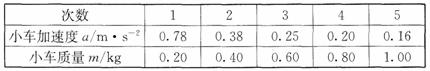 (2)在“探究加度与质量的关系”时,保持砝码和小桶质量不变,改变小车质量m,分别得到小车加速度a与质量m数据如下表: