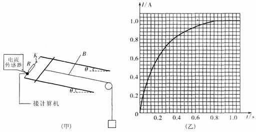 .实验时,先断开K,取下细线调节轨道倾角,使杆恰好能沿轨道匀速下滑.然后固定轨道,闭合K,在导轨区域加一垂直轨道平面向下的匀强磁场,让杆在悬挂物M的牵引下,从图示位置由静止开始释放,此时计算机屏幕上显示出如图(乙)所示的