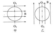 8.甲、乙两个完全相同的铜环均可绕竖直固定轴O1O2旋转,现让它们以相同角速度同时开始转动,由于阻力作用,经相同的时间后停止.若将圆环置于如图所示的匀强磁场中,甲环的转轴与磁场方向垂直,乙环的转轴与磁场方向平行,现让甲、乙两环同时以相同的初始角速度开始转动后,下列判断正确的是