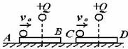 8.如图所示,AB、CD分别为固定在地面上的铁块和木块,上表面光滑、长度相等均为L,在AB、CD中央正上方等高处固定相同的点电荷+Q,相同的带+q的绝缘小球以等大的速度v0从各自左端开始运动,在滑到左端的过程中,所用时间分别为tAB和tCD。那么 ( )