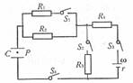 9.如图所示的电路中,电键S1、S2、S3、S4均闭合,C是极板水平放置的平行板电容器,极板间悬浮着一油滴P,欲使P向下运动,应断开电键 ( )