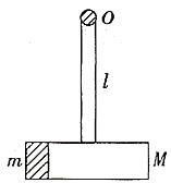 16.(10分) 如图所示,在质量为M的玻璃管中盛有少量乙醚液体,用质量为m的软木塞在乙醚蒸汽的压力下水平飞出,玻璃管悬于长为l的轻杆上,细杆可绕上端O轴无摩擦转动,欲使玻璃管在竖直平面内做圆周运动,在忽略热量损失的条件下,乙醚最少要消耗多少内能?
