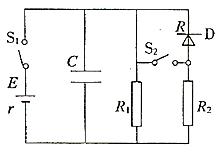 18.(10分)如图所示的电路,电源电动势E=6V,内阻r=1Ω,电阻R1=3Ω,R2=6Ω,电容器的电容C=3.6μF,二极管D具有单向导电性,开始时,开关S1闭合,S2断开。