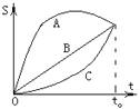 2.A、B、C三物同时、同地、同向出发作直线运动,下图是它们位移与时间的图象,由图可知它们在t0时间内 ( )