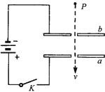 。现使a板不动,保持开关K打开或闭合,b板向上或向下平移一小段距离,相同的液滴仍从P点自由落下,先后穿过两个小孔后速度为