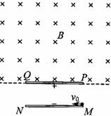 24.(18分)如图所示,MN、PQ是平行金属板,板长为L两板间距离为d,在PQ板的上方有垂直纸面向里足够大的匀强磁场.一个电荷量为q,质量为m的带负电粒子以速度V0从MN板边缘且紧贴M点,沿平行于板的方向射入两板间,结果粒子恰好从PQ板左边缘飞进磁场,然后又恰好从PQ板的右边缘飞进电场.不计粒子重力,求: