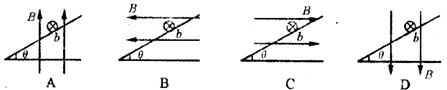 ,在下图所示的各种磁场中,导体棒均处于静止状态,则导体棒与导轨间的摩擦力可能为零的是