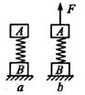 12.如下图a所示,水平面上质量相等的两木块A、B用一轻弹簧相连接,整个系统处于平衡状态。现用一竖直向上的力