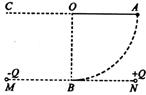 的绝缘轻质细杆的一端,细杆另一端可绕过O点且与MN垂直的水平轴无摩擦地转动,O点位于MN的垂直平分线上的距离为