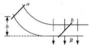 如图所示,金属棒a从高为h处由静止沿光滑的弧形导轨下滑进入光滑导轨的水平部分,导轨的水干部分处于竖直向下的匀强磁场中。在水平部分原先静止有另一根金属棒b,已知ma=