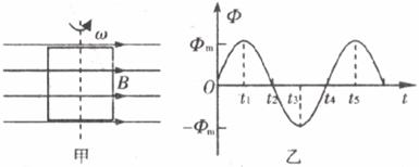 5.如下图甲所示,一个矩形线圈在匀强磁场中做匀速转动,穿过线圈的磁通量随时间变化的关系如图乙所示。下列说法正确的是