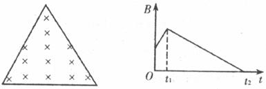 9.闭合的三角形线圈平面内,有垂直纸面向里的匀强磁场,取向里为正方向,磁感应强度B随时间