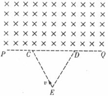 从等边三角形CDE的顶点E沿EC方向射入磁场,结果粒子经磁场后恰好又返回E点。已知等边三角形CDE的边长为