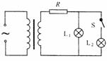 10.用电高峰期,电灯往往会变暗,其原理可简化为如下物理问题。如图所示,理想变压器的副线圈上,通过输电线连接两只相同的灯泡L1和L2,输电线的等效电阻为R,原线圈输入有效值恒定的交流电压,当开关s闭合时,以下说法正确的是 ( )