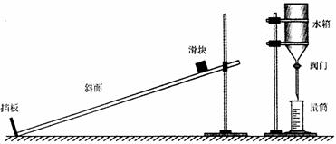 (1)实验时,让滑块从不同高度由静止沿斜面下滑,并同时打开装置中的阀门,使水箱中的水流到量筒中;当滑块碰到挡板的同时关闭阀门(整个过程中水流可视为均匀稳定的)。该实验探究方案是利用量筒中收集的水量来测量___________的。
