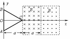 )导线框ABC从图示位置方向匀速穿过两磁场区域,以逆时针方向为电流的正方向,在下图中感应电流I与线框移动距离