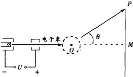 21.(18分)电视机的显像管中,电子束的偏转是用磁偏转技术实现的。电子束经过电压为U的加速电场后,进入一圆形匀强磁场区,如下图所示。磁场方向垂直于圆面。磁场区的中心为O,半径为r。当不加磁场时,电子束将通过O点而打到屏幕的中心M点。为了让电子束射到屏幕边缘P,需要加磁场,使电子束偏转一已知角度θ,此时磁场的磁感应强度B应为多少?(已知电子的带电量为e,质量为m)