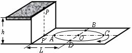 22.(22分)地面上有一个半径为R的圆形跑道,高为h的平台边缘上的P点在地面上P′点的正上方,P′与跑道圆心O的距离为L(L>R),如下图所示。跑道上停有一辆小车,现从P点水平抛出小沙袋,使其落入小车中(沙袋所受空气阻力不计)。问: