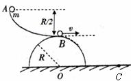 8.如图所示,光滑半球的半径为R,球心为O,固定在水平面上,其上方有一个光滑曲面轨道AB,高度为R/2.轨道底端水平并与半球顶端相切.质量为m的小球由A点静止滑下.小球在水平面上的落点为C,则