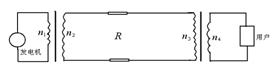 16.(12分)如图所示,一小型发电机通过升压、降压变压器把电能输送给用户,已知发电机的输出功率P1=50 kW,输出电压U1=500 V,升压变压器原、副线圈匝数比为n1┱n2=1:5,两个变压器间的输电导线的总电阻R=15 Ω,降压变压器的输出电压U4=220 V,变压器本身的损耗忽略不计,求:
