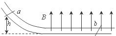 17.(14分)如图所示,两根金属轨道之间的距离为L,轨道水平部分有竖直向上的匀强磁场B,一质量为m的金属杆a在离地h的高处从静止开始沿弧形轨道下滑,一根质量为
