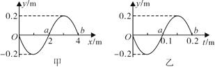 9.如图所示,图甲为一列沿x轴正方向传播的简谐波某时刻(t=0)的波形。图乙表示该波传播的介质中某质点从此时起的振动图象。则 ( )