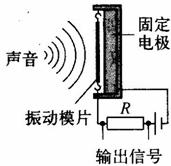 11.如图所示的电容式话筒就是一种电容式传感器,其原理是:导电性振动膜片与固定电极构成了一个电容器,当振动膜片在声压的作用下振动时,两个电极之间的电容发生变化,电路中电流随之变化,这样声信号就变成了电信号。则当振动膜片向右振动时 ( )