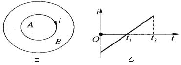 12.如图甲所示,两个闭合圆形线圈A、B的圆心重合,放在同一水平面内,线圈A中通以如图乙所示的变化电流,t=0时电流方向为顺时针(如图中箭头所示)。对于线圈B,下列说法正确的是 ( )