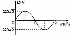 16.一理想变压器的原、副线圈匝数比为55:3,原线圈所接电源电压按图所示规律变化,副线圈接有一个灯泡能正常发光。则灯泡的额定电压是__ __,灯泡两端电压瞬时值随时间变化的规律是__ __。